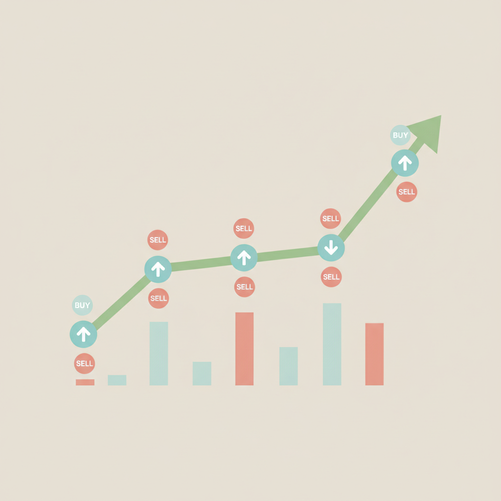 시장 방향은 누구도 정확히 예측할 수 없기 때문에, 처음부터 큰 금액을 한 번에 넣는 것은 부담이 큽니다. 분할 매수는 평균 매입 단가를 안정시키는 데 도움이 되고, 분할 매도는 시장 상황을 살펴보며 보다 차분하게 결정할 수 있도록 도와줍니다.